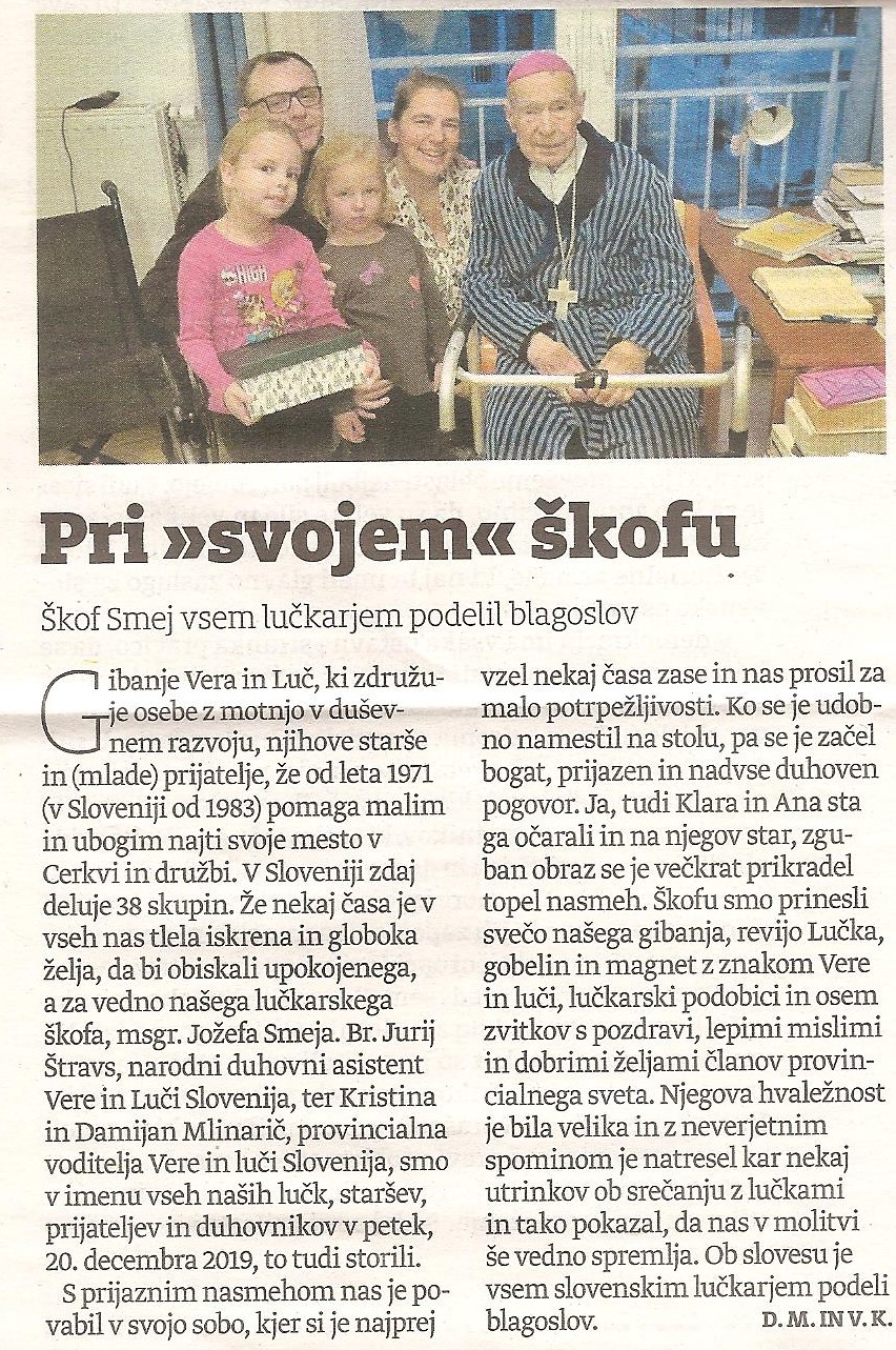 Prispevek o obisku msgr. dr. Jožefa Smeja, referenčnega škofa Vere in luči v pokoju.