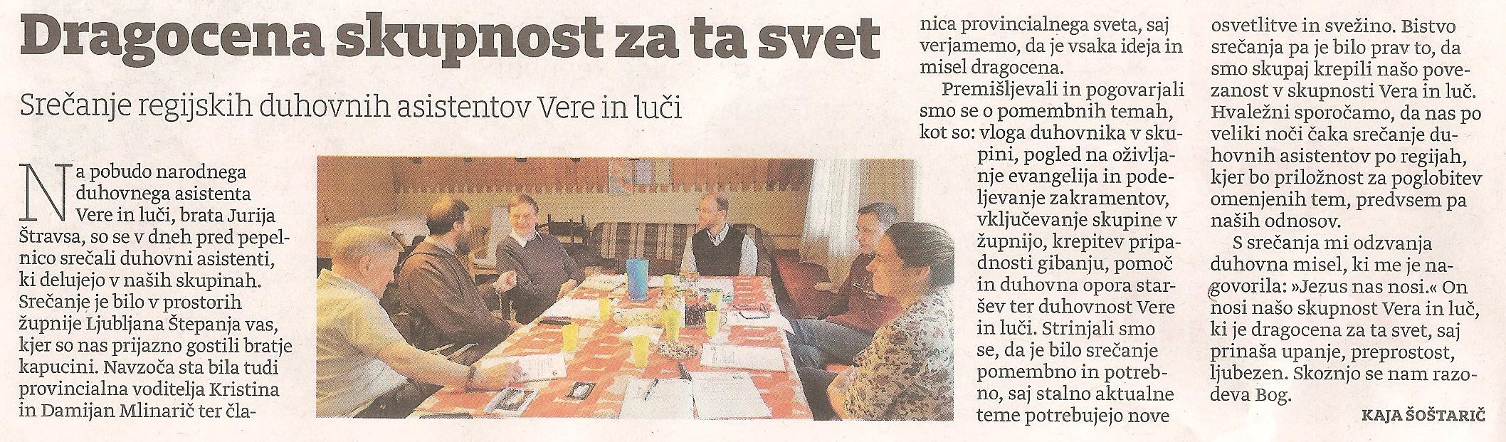 Prispevek o sestanku regijskih duhovnih asistentov Vere in luči.