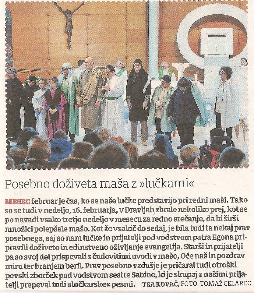 Prispevek o predstavitveni sv. maši Vere in luči v Dravljah.